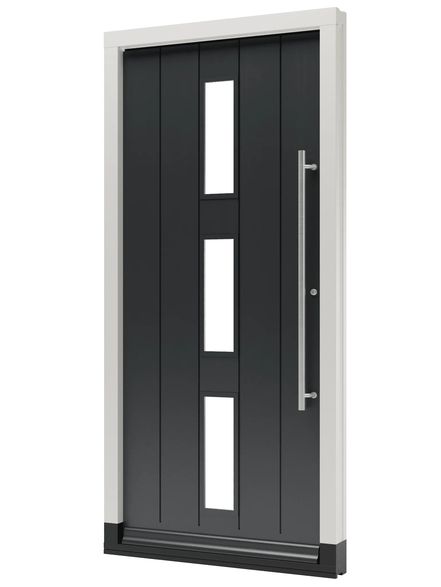 Bekijk hier onze houten voordeur TH09, deze voordeur is voorzien van drie verticale glasvakken en daarnaast worden er verticale groeven toegevoegd aan de deur voor een luxueuze uitstraling. Bij het samenstellen heb je daarnaast de mogelijkheid om te kiezen voor een stanggreep in diverse uitvoeringen. Op deze manier kun je de uitstraling van de houten voordeur geheel naar eigen hand zetten! Start vandaag nog met het samenstellen van je houten voordeur bij Toelevering Online!
